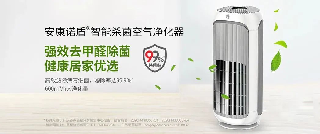 安康諾盾智能殺菌空氣凈化器,擁有高達600m3/h(顆粒物)+150m3/h(甲醛)的CADR值,針對35-60m3的房間,實現(xiàn)空氣凈化只需5分鐘。